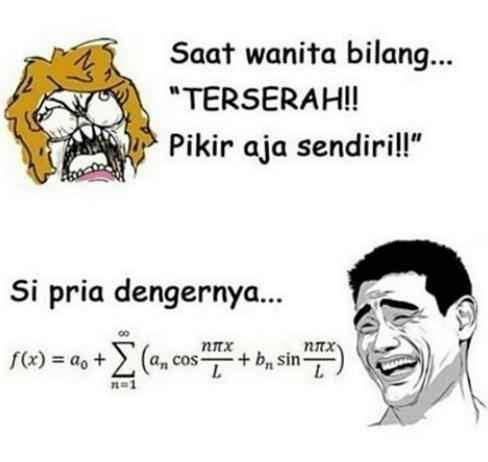 Kata "pikir aja sendiri", mending jika ada wanita yang ngomong gini. Kata yang harus kamu ucapkan adalah "maaf" (biar aman) karena dia bisa jadi marah atau bad moodgara-gara kamu atau emang lagi banyak masalah.